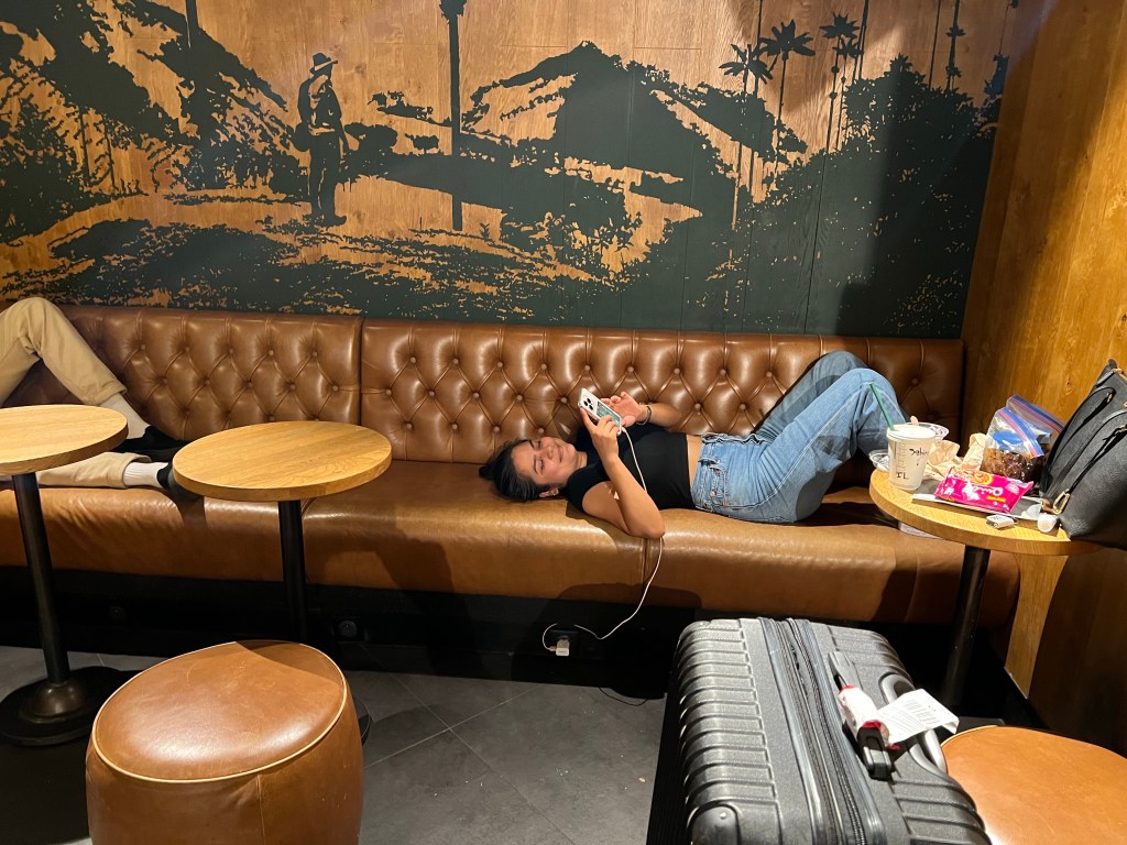 Starbucks at the Paris airport train station. I wasn’t the only weary traveler.