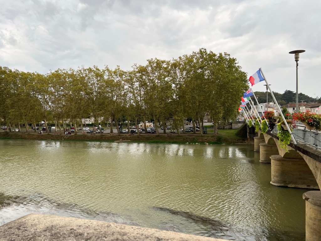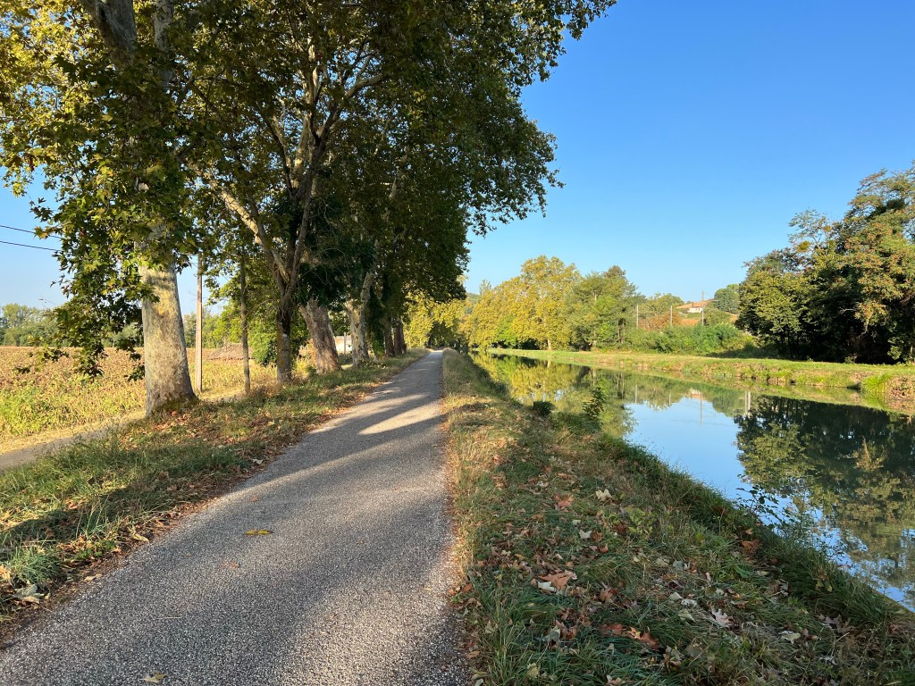 Well, day 1 was ideal. Walking beside a lovely canal with trees shading the flat path. Lots of bikes peddling by and everyone in fine spirits, including me. Twelve miles from Moissac to Auvillar was like a fairy tale walk.