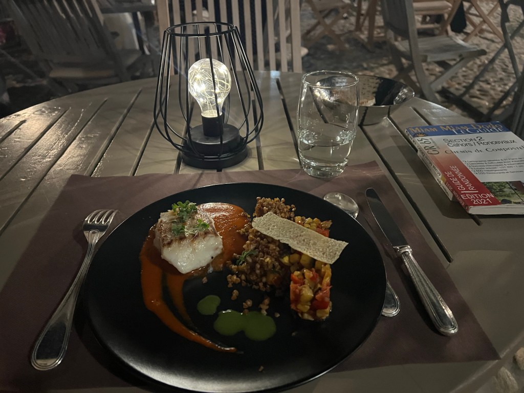 A pilgrimage symbolizes life, to quote from my Pilgrim’s guide, written by Saint Jean-Paul II, pope and pilgrim. We confront the challenges of the path, and first of all, our fragility. But we persevere. Jesus is our way, because he is in every aspect of our journey, if we are open to Him. I’m waxing faith-filled again, but that can happen here. My walk today was beautiful and more inspiring than the majestic Collégiale, that dominated Le Romieu. I just realized it is Sunday. And even though I didn’t worship formally anywhere, I did worship.