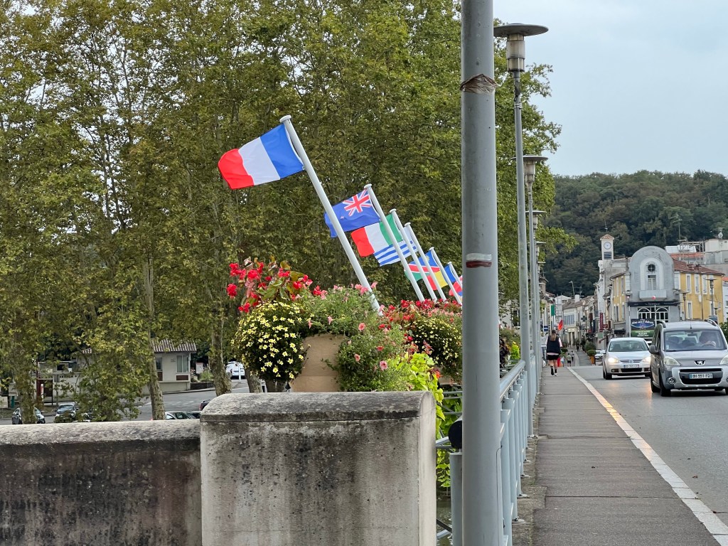 Flags flying over the Adour River