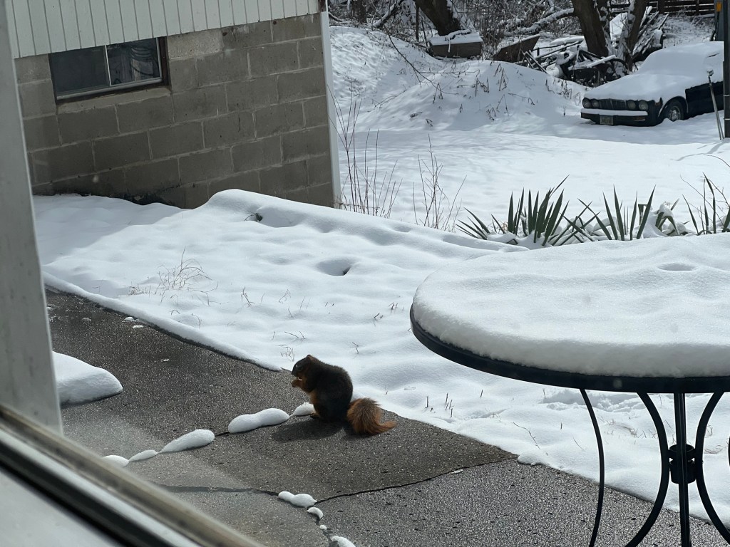 February snow and Mr Squirrel